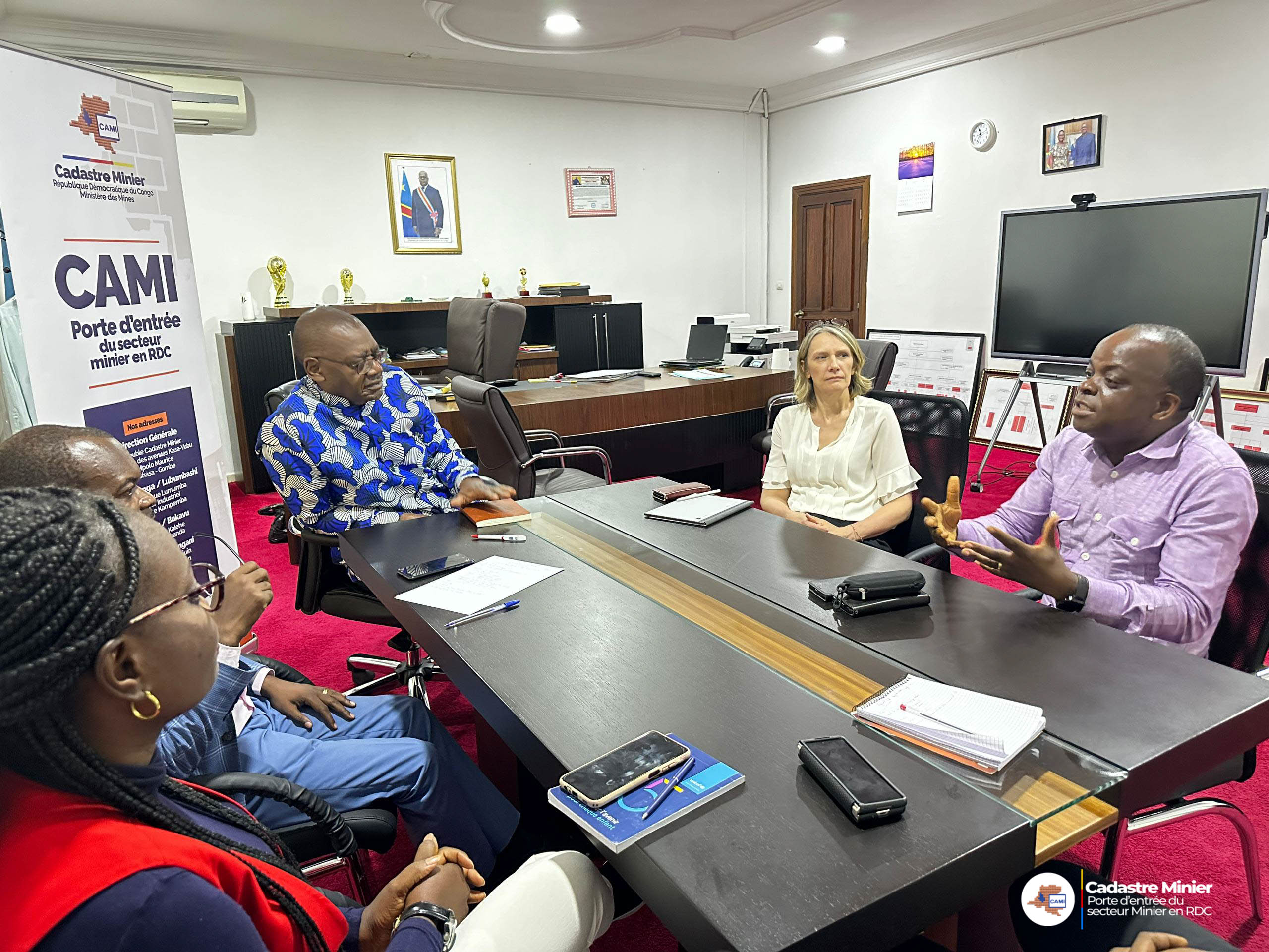 Le directeur général du Cadastre Minier (CAMI) M. Popol Mabolia, a reçu, vendredi 26 janvier, une visite de courtoisie de Mme Joanne Lebert, Directrice Générale de l'ONG IMPACT, accompagnée de son Conseiller en gouvernance, M. Félicien Mbikayi.