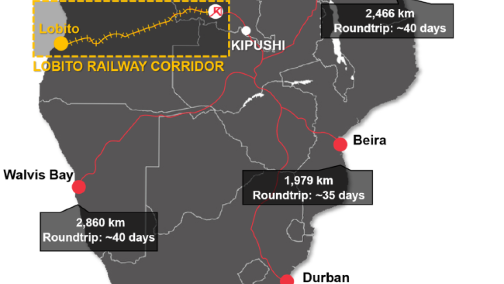 Un consortium suisse, lié au groupe Trafigura, a acheté les droits d'exploitation de la ligne pour trente ans. Le "Lobito Atlantic Railway" espère pouvoir faire transiter, d'ici à 2035, jusqu'à trois millions de tonnes sur ces rails et relier la mine au port en huit jours, au lieu d'un mois actuellement pour aller en camion jusqu'à Durban.