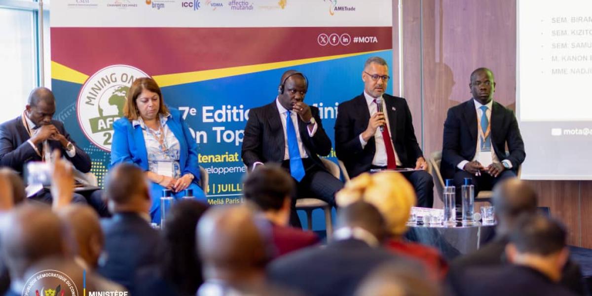 Le ministre des Mines de la République démocratique du Congo, Kizito Pakabomba s'est appesanti sur les réformes en cours et les perspectives pour le secteur minier dans le cadre des discussions relatives aux enjeux de la transition énergétique et de la souveraineté industrielle au cours d'un panel, le jeudi 4 juillet 2024, à la 7ᵉ édition du Sommet "MOTA2024" qui s'est tenu à Paris, en France.